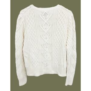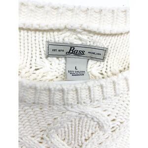 Bass Fisherman Cable Knit Sweater Ivory Pullover Crew Neck Cotton Blend Size L