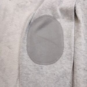 Preppy Gray Button Front Cardigan from Bass. Features elbow patch sleeves, front button pockets, V-Neck, ribbing at neck, wrists and waist, fabric is speckled with white, darker gray & black specks for added interest. Machine Wash.