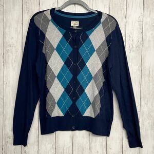 Bass Heritage Collection Red Blue Argyle Button Up Long Sleeve Sweater Bundle