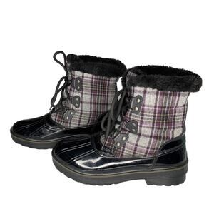 Bass Heritage Collection Winter Snowbird Boots Black Gray Purple Plaid S…