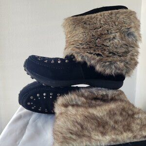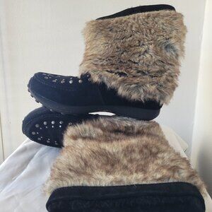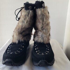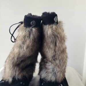 Bass Kodiak Wedge Black Suede Leather Faux Fur Kneehigh Boots