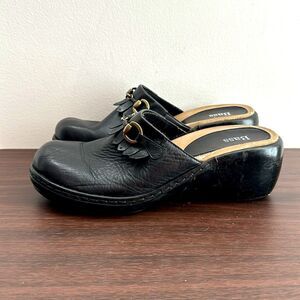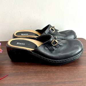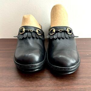 Bass Kyla Black Leather Fringe Kilted Clog Mules Sz 8