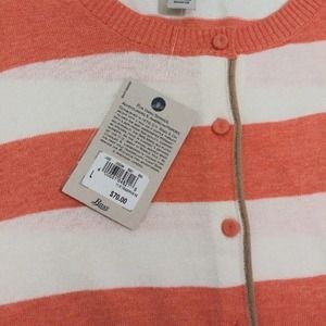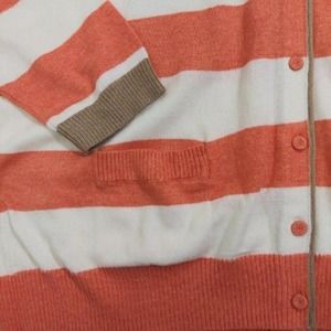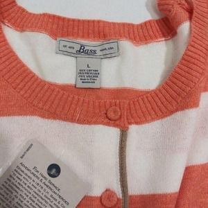 Bass Brand, Large orange/coralish striped sweater/Cardigan with buttons up the front. New with tags, extra button included as well attached to tag. Cart for an offer! #mama #cardigan