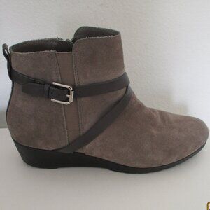 Bass "Monique" Womens Tan Suede Leather Side Zip 1.25" Wedge Ankle Boot-Size 10M