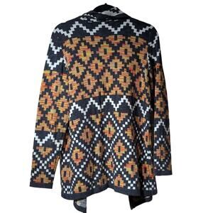 Bass Multicolor Geometric Print Long Sleeve Open Front Cardigan Sweater Size M