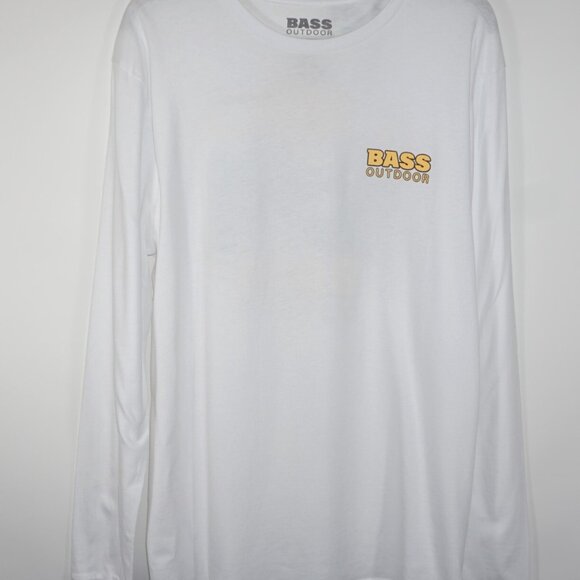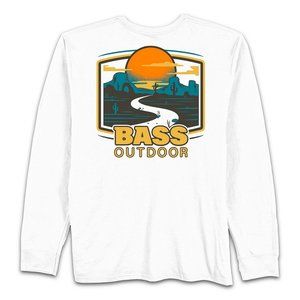 Long sleeve crew neck T-shirt with classic BASS OUTDOOR front and back graphic.