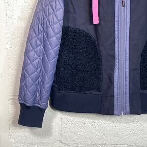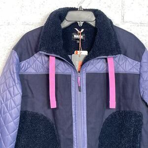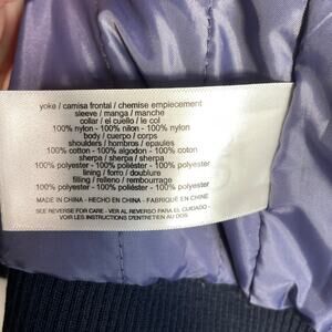 High collar with tie detail; zipper closure at center front with sherpa lining