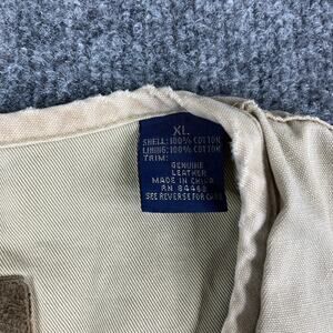 Bass Outdoors Vest Mens Size XL Tan Cotton Leather Trim Utility Fishing Pockets