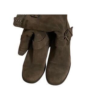 Bass Petro Women’s Boots Size 9 Gray Suede Leather Upper Mid Calf Buckle