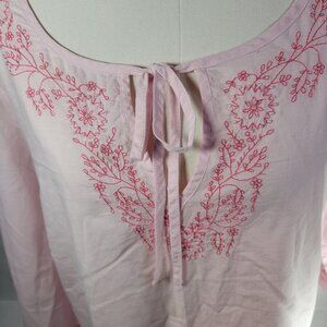 Bass Pink Lightweight Floral Embroidered Bead Cotton 3/4 Sleeve Tunic Size L