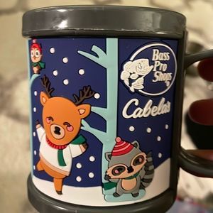 Bass Pro Shop Cabela’s Christmas Winter Forest Animals Snow Kids Mug lot of 3 pre owned great for hot cocoa or for Santa