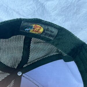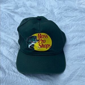 Dark green cap featuring Bass Pro Shops logo. Mesh back design.