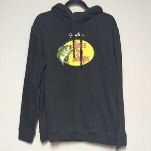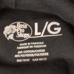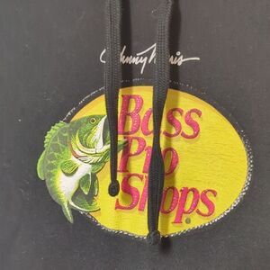 This Bass Pro Shops fish design features a striking black and yellow color scheme that stands out. Perfect for fishing enthusiasts, it showcases a vibrant graphic that captures the spirit of the outdoors.