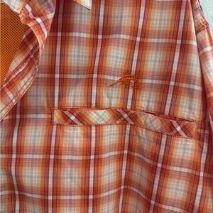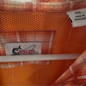 Casual button-down with vibrant orange plaid. Perfect for everyday wear. Soft and breathable fabric.