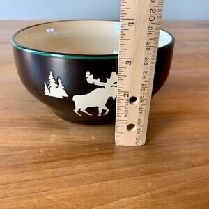 Bass Pro Shops Stoneware 6" Soup/Cereal Bowl Brown Moose Woods Cabin Winter Deco