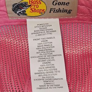 Bass Pro Shops Trucker Hat Pink White Mesh Snapback Gone Fishing Cap