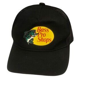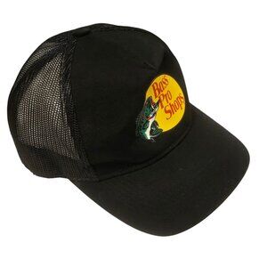 Bass Pro Shops Youth Black Mesh Trucker Hat Adjustable Snapback Fishing Logo