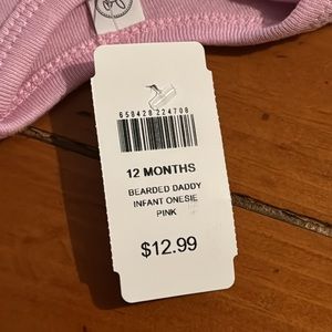 Pink baby bodysuit from Bass Pro Shops that says “I love my bearded daddy”. Size 12 months. Screenprinted on a Rabbit Skins onesie. NWT