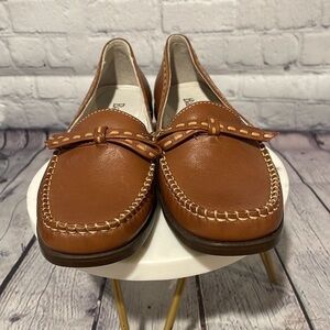 Bass “Romana” British Tan leather slip on loafer | Sz6.5 | Half bow detail