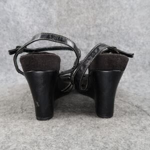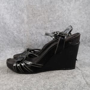 Used Bass Shoes Womens 7.5 Sandals Platform Wedge Buckle Straps Open Toe Black Y2k