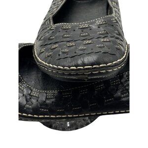 Bass Size 10 Black Leather Slip-On Flats Woven Detail Rubber Sole Comfortable