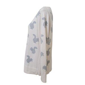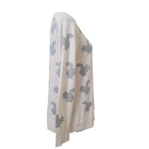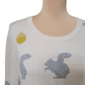 Bass Size XL Ivory Lightweight Sweater with Gray Squirrels and 1 Acorn.