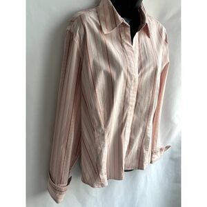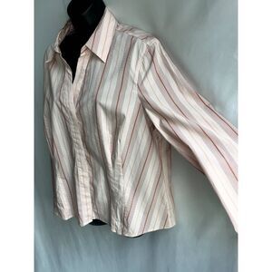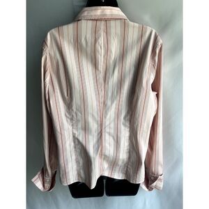 Bass Stretch Button Down Striped Blouse Long Sleeve Size XL Barbiecore Pink Cute