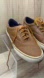 Stylish Bass sneakers in tan leather. Features white soles and orange laces. Ideal for casual outings.