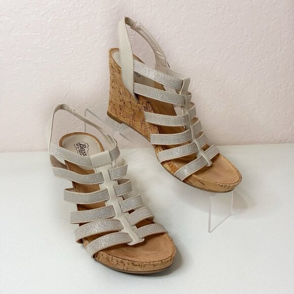 Bass Wedge Sandals Louisa Womens 9 M Strappy Elastic Metallic Beige Resort Vacay