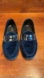 Bass Weejuns Wynn Blue Velvet loafer black patent leather accents Sz 7