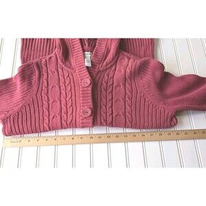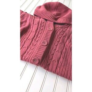 Bass Women's Cardigan Size Medium Hooded Button Up Cable Knit Long Raspberry Pink
