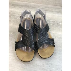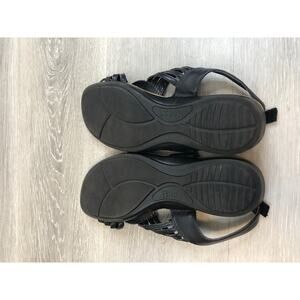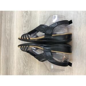 Bass Women's Sandal 9M Black Leather Slip-On Open Toe Slingback Wedge Comfort