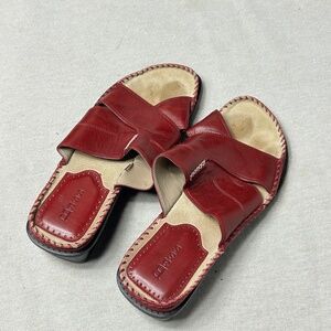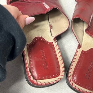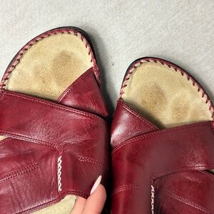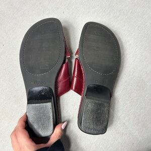 Classic Bass red leather block heel sandals with comfy footbed and contrast stitching — easy, versatile, and great for everyday summer wear. Gently used with signs of wear (footbed marks/scuffs — see photos), clean, and in good shape. Questions welcome — my goal is for every customer to be fully satisfied with their purchase!