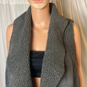 Bass Women’s Vest Fleece Size M Gray Fall Western Collar Sterling Lapel