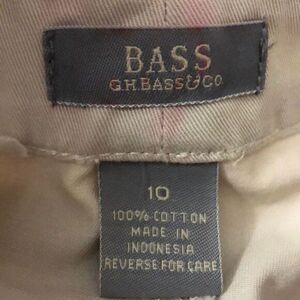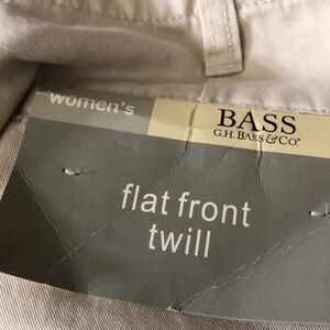Bass 100% cotton flat front twill cement colored wide leg khakis. Inside Bass tag shows a bit of pink, not seen on outside while wearing. Waist 16” inseam 29” Size 10