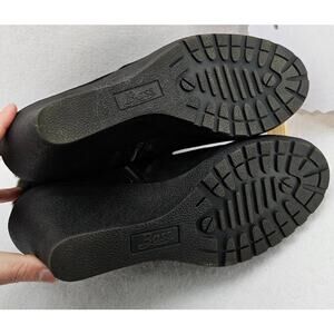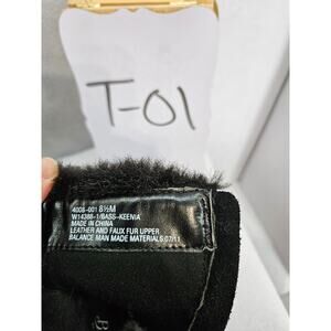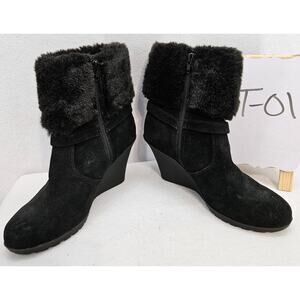Bass black, leather and faux fur, wedge heeled boot with ankle buckle and inner side zipper, size 8.5