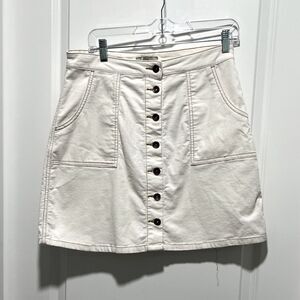 Stylish cream mini skirt with button-down front.