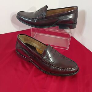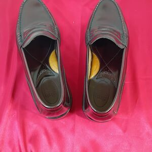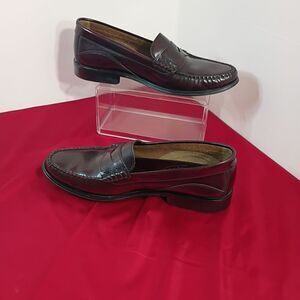 Classic leather loafers with polished finish. Features intricate stitching. Perfect for versatile wear.