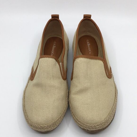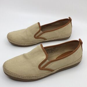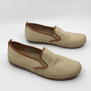 Bass Sage canvas slip on shoes loafers tan / cream with leather trim Size 5.5 M