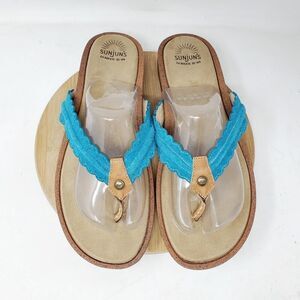 Bass Sunjuns Sandals Women 10 Blue Suede Flip Flop Thong Pool Beach Resort Shoes