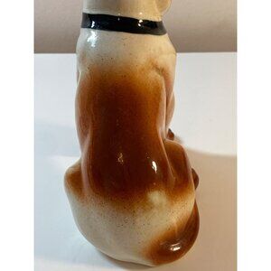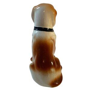 • Bassett Hound Dog Vintage Glazed Ceramic Sitting Figurine Unmarked