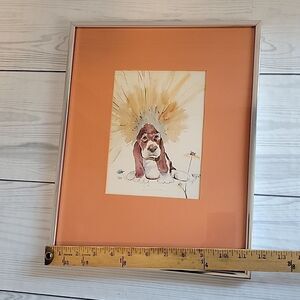 Nicely matted and framed original watercolor of a sitting Bassett hound and flower. The painting measured is 6X8. It's super cute and in perfect condition.