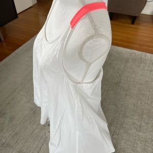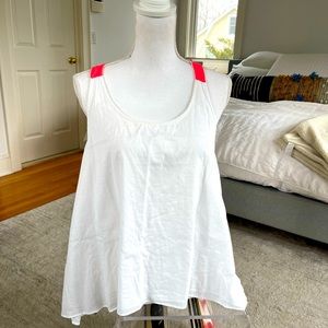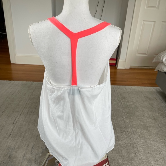 Ike new white double lined t back tank/blouse. Strap is neon pink. So lightweight and fun to wear. Armpit to armpit 18 shoulder to hem 25/26