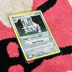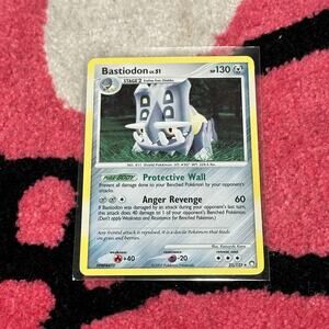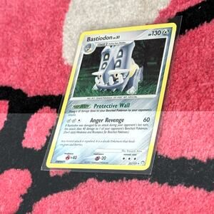 Authentic Bastiodon 21 from the Pokémon Mysterious Treasures expansion, part of the Diamond and Pearl era. Features the Shield Pokémon in its original artwork. Condition is as pictured; please review photos for wear or surface details. A great pickup for collectors completing Mysterious Treasures or fans of Sinnoh fossil Pokémon.