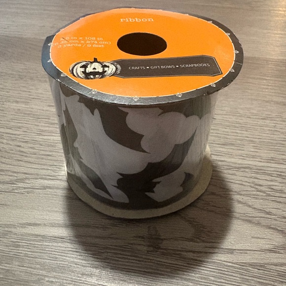 White & Black Bat Ribbon 2.5in x 108in 3 yards/ 9 feet