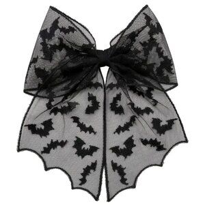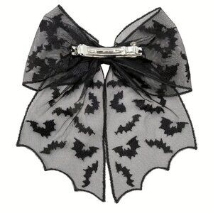 𓆩𓆪Bat Silhouette Barrette Hair Clip Black Lace Mesh 8"x 6" Halloween Goth NWOT𓆩𓆪