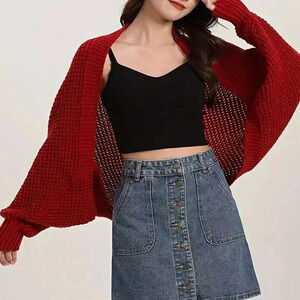 Knit Shawl Cardigan for Women - Batwing Sleeves, Warm & Stylish, Material: Acrylic Elasticity
