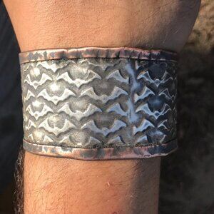 Bat Sterling Silver Gothic Copper Cuff Unisex Goth Wide Mans Womans Rustic Punk