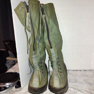 These boots feature a zip and lace closure for a secure fit over other footwear, and are a great collectible or functional piece for survivalists, reenactors, or outdoor adventurers.