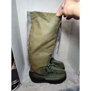 Authentic U.S. Military Extreme Cold Weather (ECW) boots made by Bata. Designed for use in arctic and cold climate operations, these overboots are constructed with durable green canvas uppers and thick rubber soles to insulate against severe cold. Often issued as part of the U.S. Army's and Marine Corps' cold-weather gear.